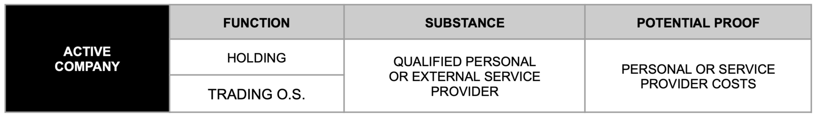 AN ACTIVE COMPANY NEEDS TO FULFIL LOCAL REQUIREMENTS FOR SUBSTANCE & PRESENCE